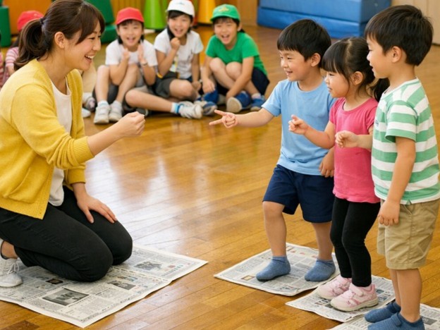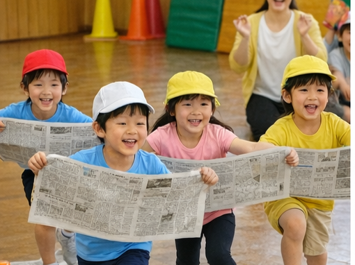 新聞紙遊びを通して、友だちとのコミュニケーション能力を高め楽しむ