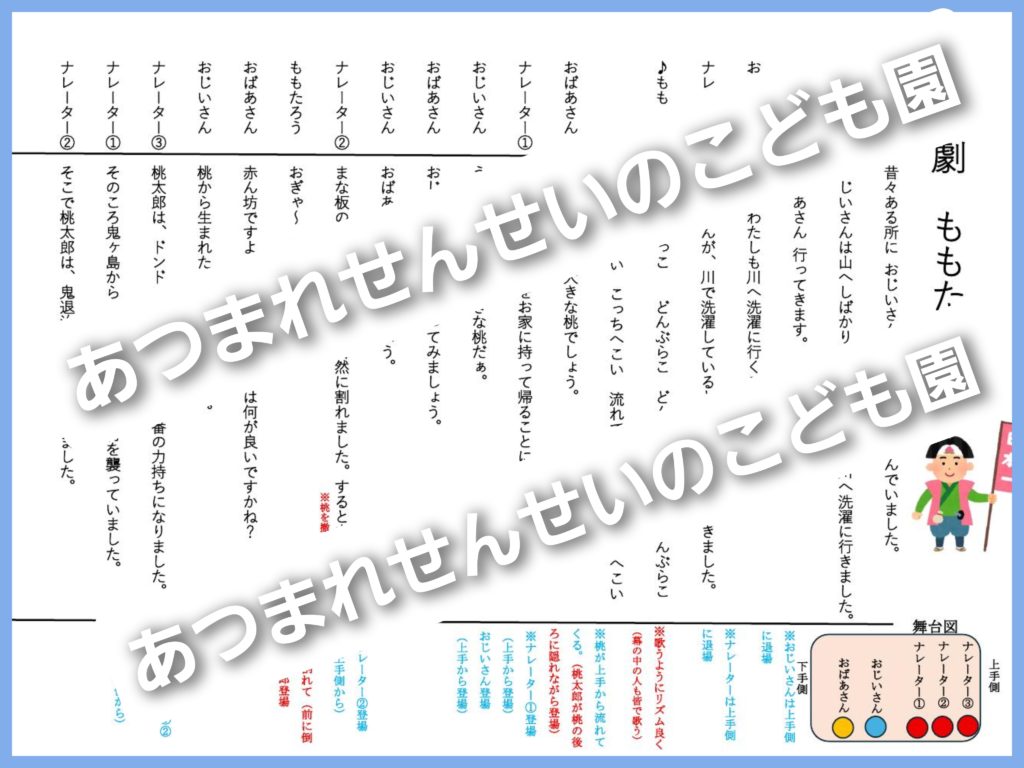 4歳・ 5歳用の劇【ももたろう台本 2026】です。