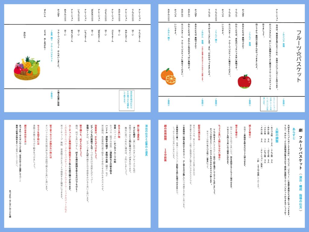 ※各果物役の特徴を紹介するセリフは、少し覚えるのが難しいので配役を決める際は考慮してください。