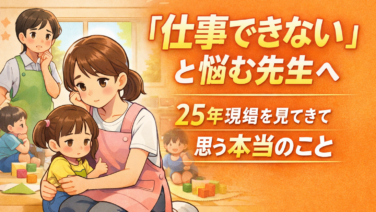 保育士で「仕事できない」と悩んでいませんか?25年以上保育現場を見てきた視点から、そう感じてしまう理由と本当の原因を解説します。無理を続ける前に知ってほしい働き方の選択肢も紹介します。